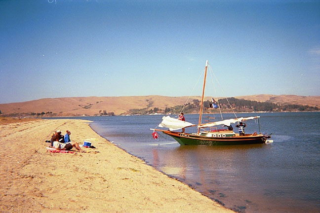 These great shots of the Powers family's Vacationer Katie Ann are really inpsiring! The first three below were taken in Tomales Bay, a very picturesque fjord north of San Francisco (formed by the northern end of the great San Andreas fault which divides a lot of California from the rest of North America geologically). We've sailed Tomales and it's just great. These shots make us want to go back!