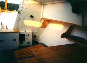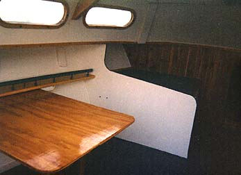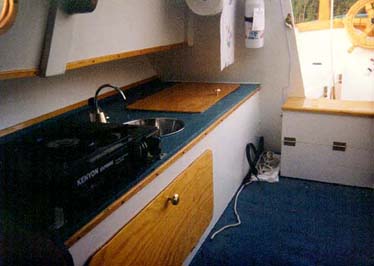 The starboard interior has the galley stuff. The sink was made from one of his wife's stainless mixing bowls. Very handy...