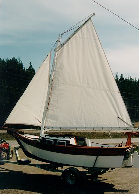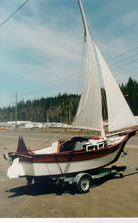 Nice galvanised trailer (with a spare). The varnished hull in-between the rubrails is pretty, but I'm not sure they'd last the way we dock! The name on the trailboards is an interesting idea as well.