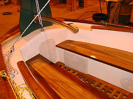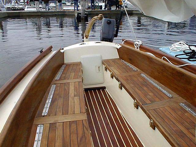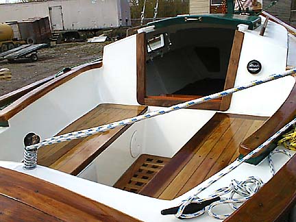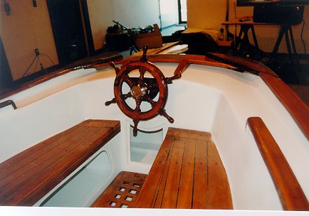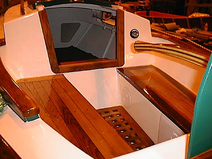 All of the brightwork is really elegant looking, with a nice tone to the wood (stained first?). The cockpit seats are inviting looking!
