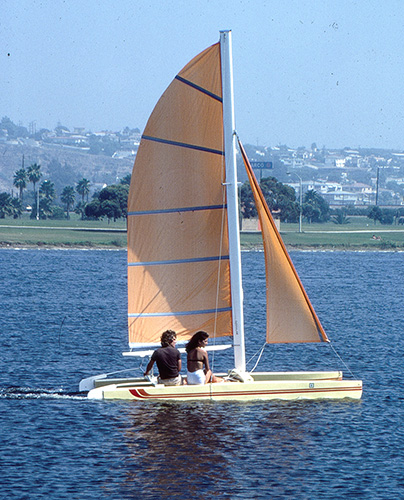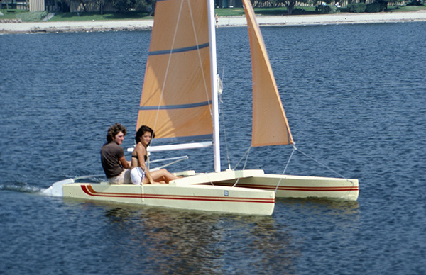 Under sail, we’ve found the MINI-CAT to be a delightfully faithful performer, dependable to take if you do things right, and in a gust, she’s fast enough to throw water off her bows like she’s coming out of a fire hose. We like her because she’s both docile and exciting—and a good boat for beginners and veteran sailors alike.