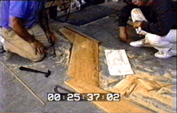 The parts for the Stem, angling up from the Keel front, are rough-cut and layed out in place before marking the curves.