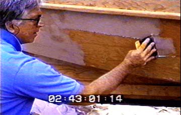 For a glossy finish and better speed, we fill in the indents of the cloth pattern with a thin layer of putty, then sand before painting.
