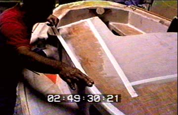 Deck areas are taped off and coated with non-skid finish for sure-footing when sailing.