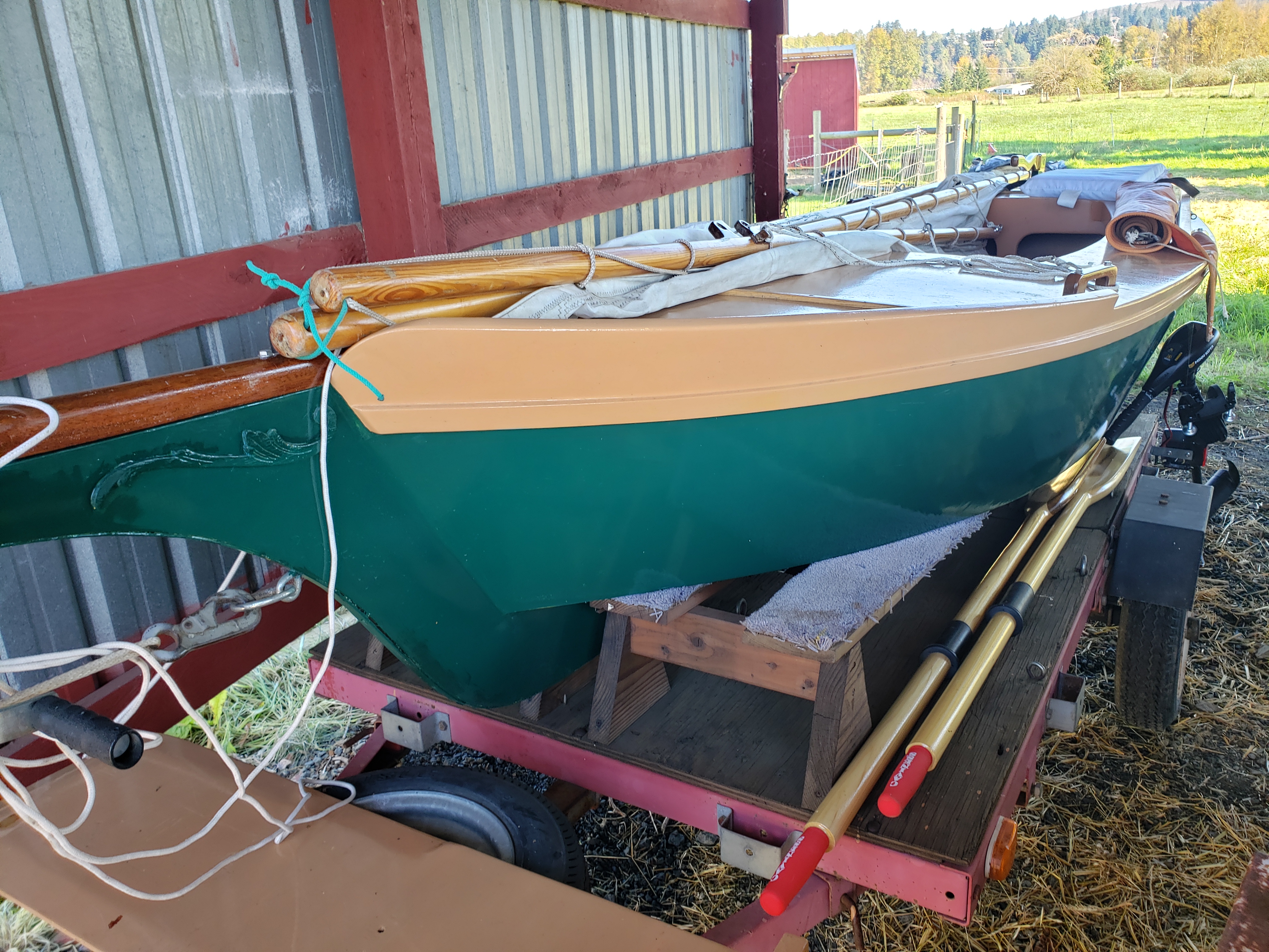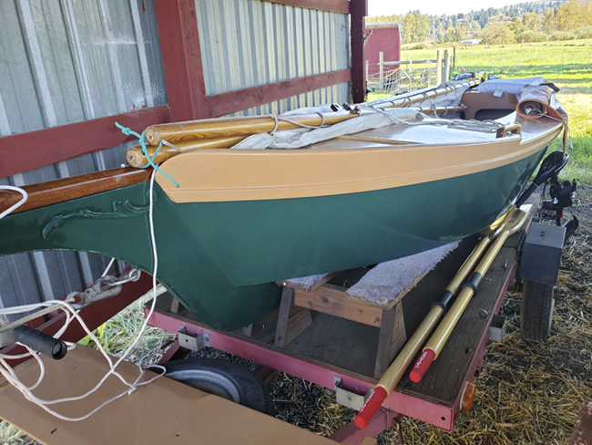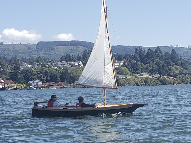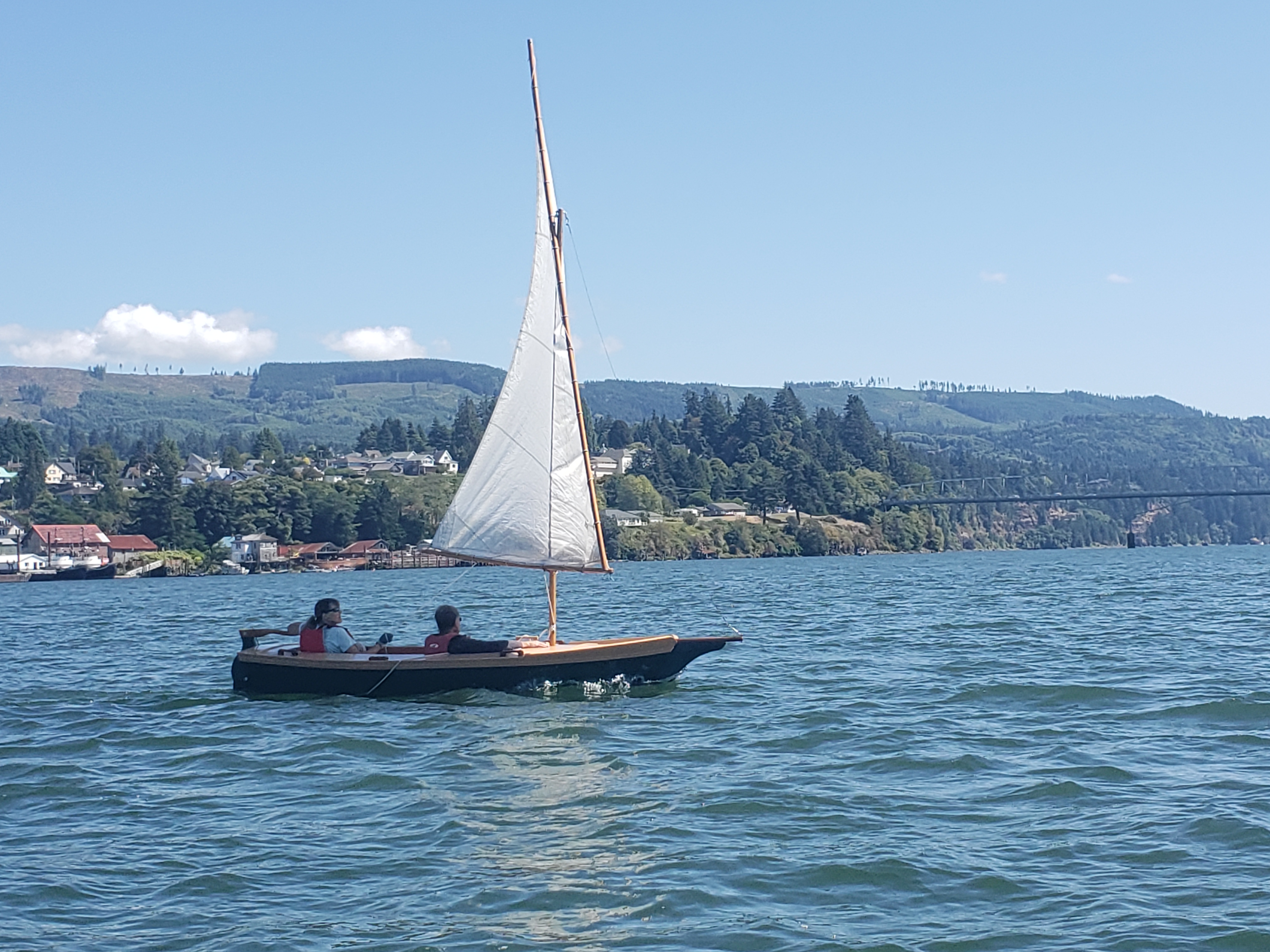 Mr. Ratliff sent these photos of his wife's Skipjack. It's a 1st-generation Skipjack, and an absolutely beautiful one! Built by a builder who loved building boats, but not sailing them, and they are the lucky recipients of his very skilled work! I love the photo on the Columbia River: it really reminds me of some of the Swiss lakes. Beautiful sailing area...We hope to see more of this pretty boat!