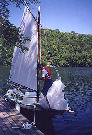 Mr. Vince Thorburn has been a busy fellow. In this photo he's standing next to his Weekender "Harmony". He helped Mr. Gordon Applebee & The Second Shawbridge Sea Scouts build "Badger", their Weekender. He also helped Mr. Michel Girard build his Skipjack (pics can be found on the Skipjack Builder Photo Page)!