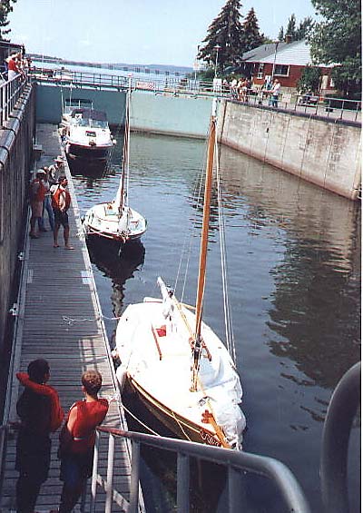 Here are few of the Sea Scouts, Vince, Gordon, and the Weekenders Harmony and Badger waiting for the ebb or flow of the lock...
