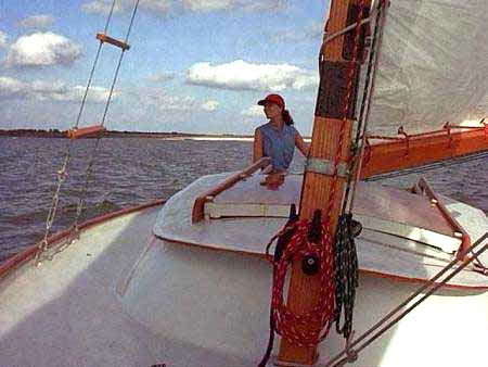 Pictures of Konrad Broer's Vacationer sailing in the capable hands of his wife Lisa.