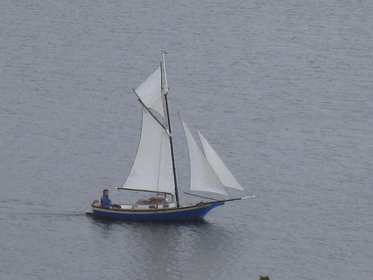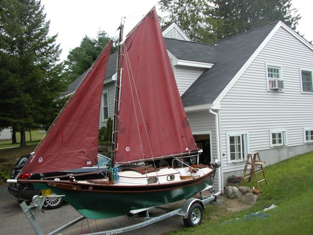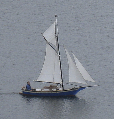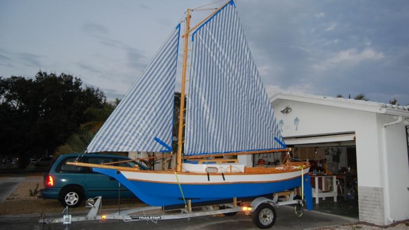 Mr. Brown has sent us photos of his very jaunty-looking Weekender! Great sails, and a cheery, bright blue — Nice!