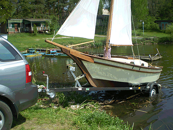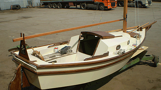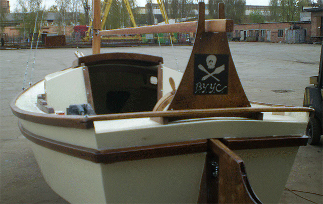 Wow; our first Builder Photos from Ukraine! (or anywhere in Eastern Europe) Very cool...Vyacheslav has built a very nice looking Weekender in the town of Zhitomir, in Ukraine. This is an attractive color scheme and I like all the brightwork. His sailing grounds look lovely; very pastoral. Our thanks to Vyacheslav for sharing these great photos and we hope to see more as the sailing season unfolds!