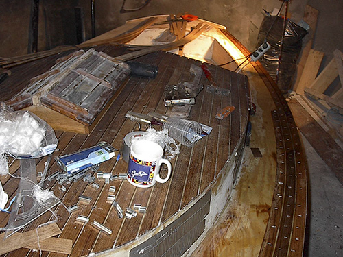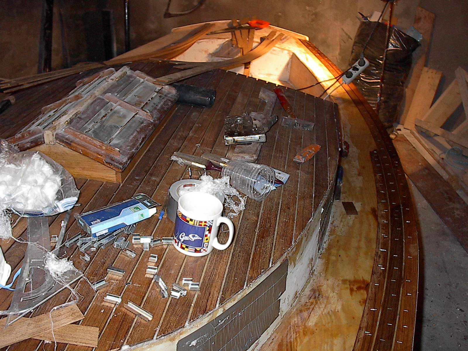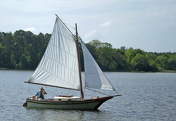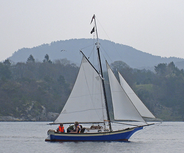 Mr. Leif Strømø has sent these photos from Norway of his modified Weekender. Very nice, and with the planked-decking many builders are choosing lately. The biggest change is, of course, the rig: A cutter rig with a topsail! Very dramatic-looking, and I bet fun off the wind. I tried a similar rig on one of our Weekenders and found it was fast off the wind, but somthing of a handfull to windward. Nice looking though!