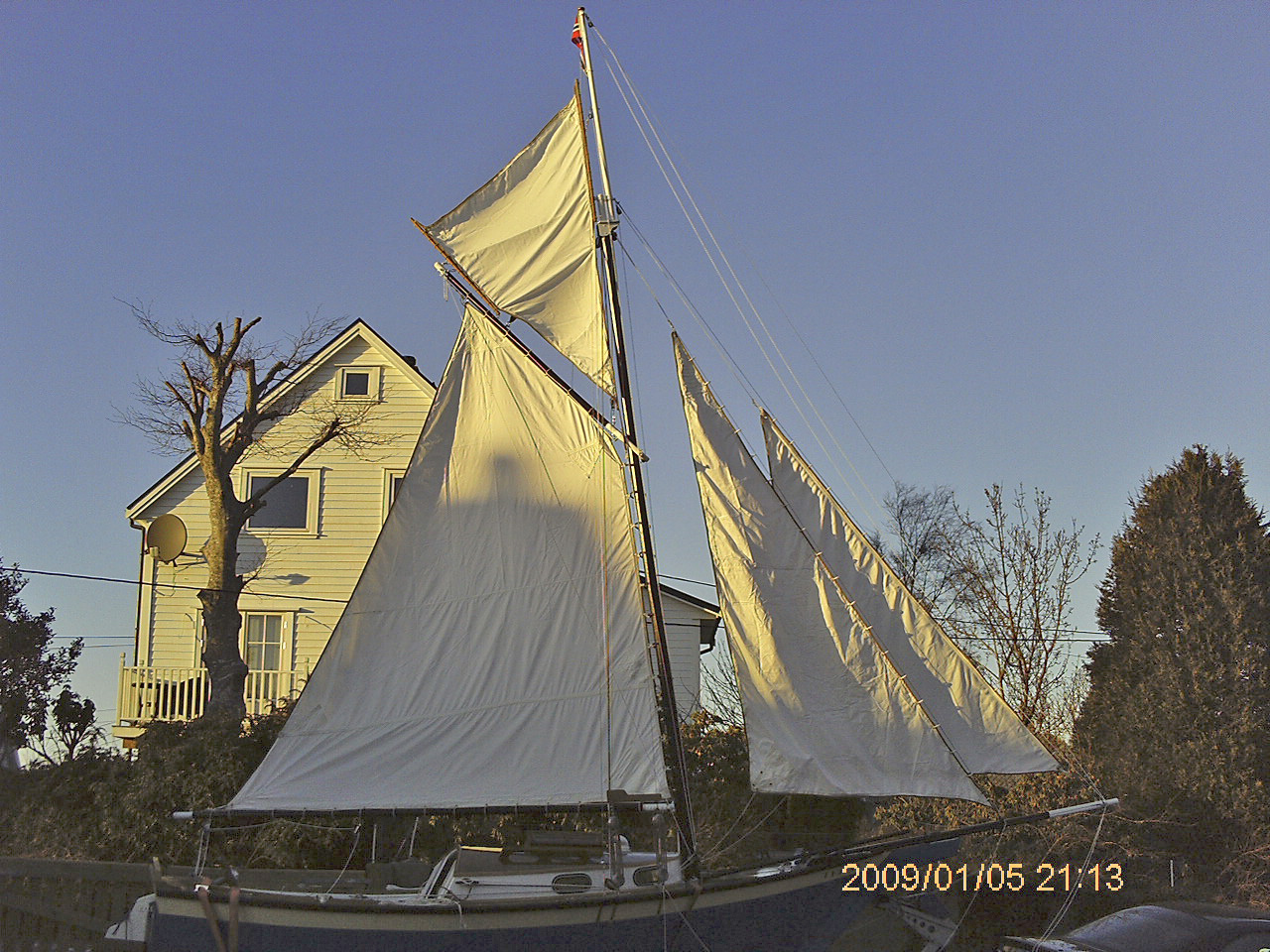 I'm very curious to hear Mr. Strømø's sailing reports after he's had a chance to try it out for a bit. I don't know the dimensions of his main and inner jib, but they look similar to the stock sail rig. If so, he can get some comparisions with different configurations; that'd be quite interesting!