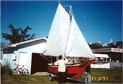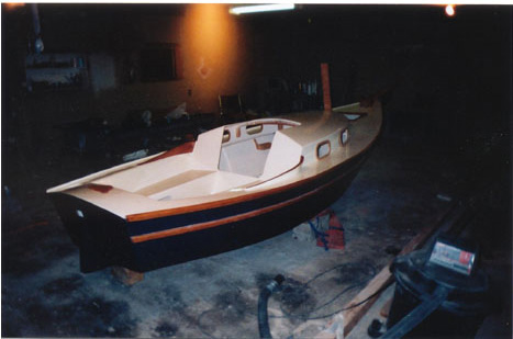 I made a few small modifications to suit my needs, I replaced the Cabin Rafters with laminated ones with a much higher arch, so I could have Sitting head room. This in turn required planking the cabin top, lengthening the mast enough to raise the boom.